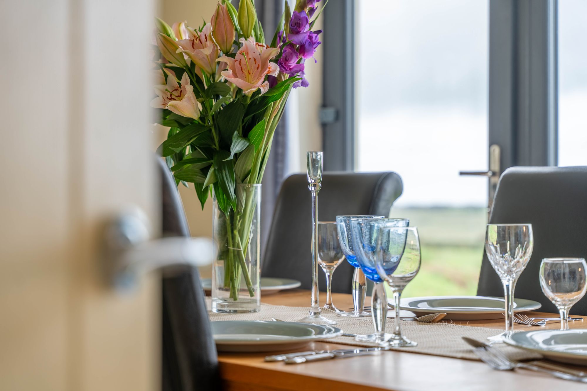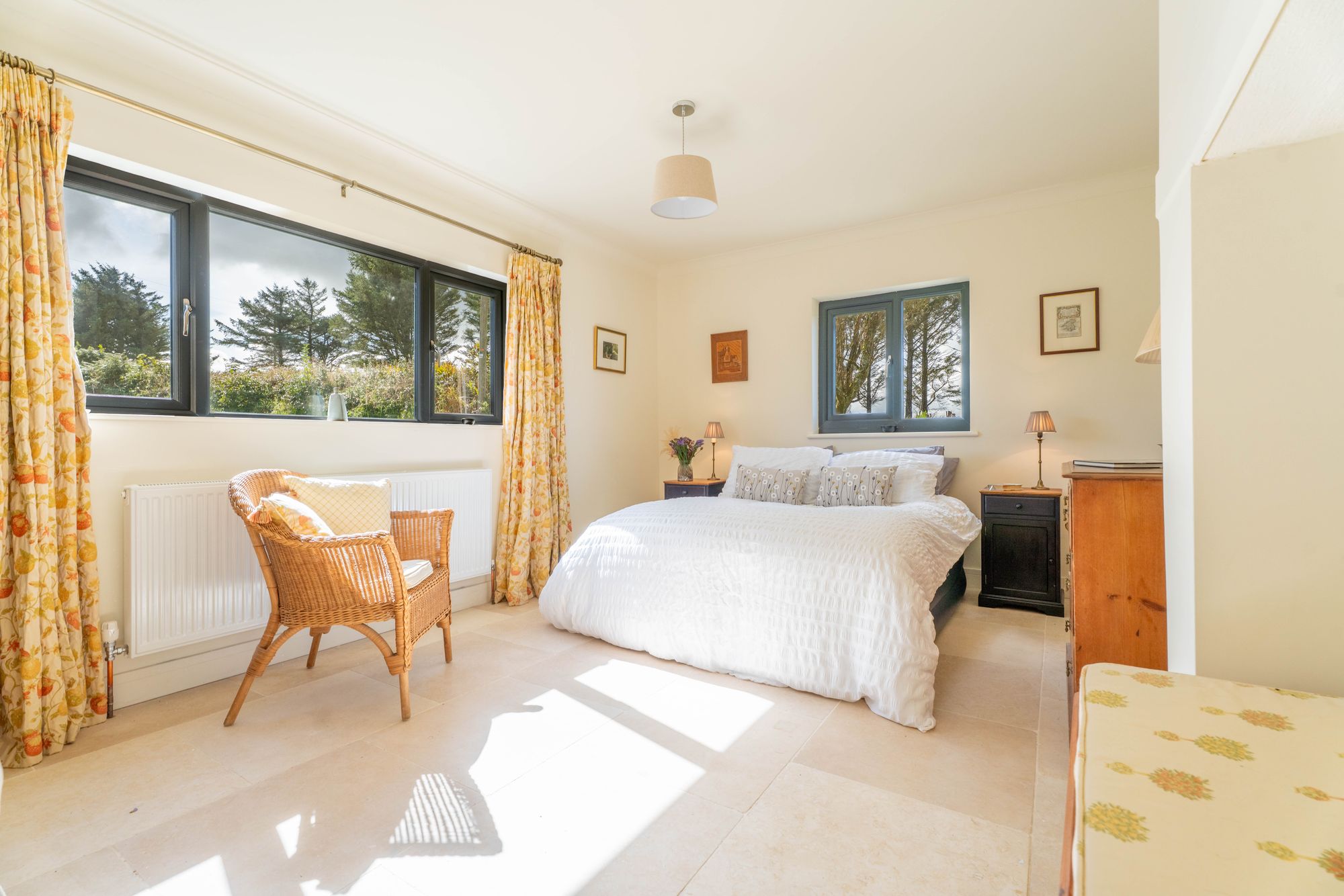 With windows to the rear overlooking countryside and uninterrupted views down to the sea, this wonderful room offers a spacious place to relax after a long day with your favourite tipple.