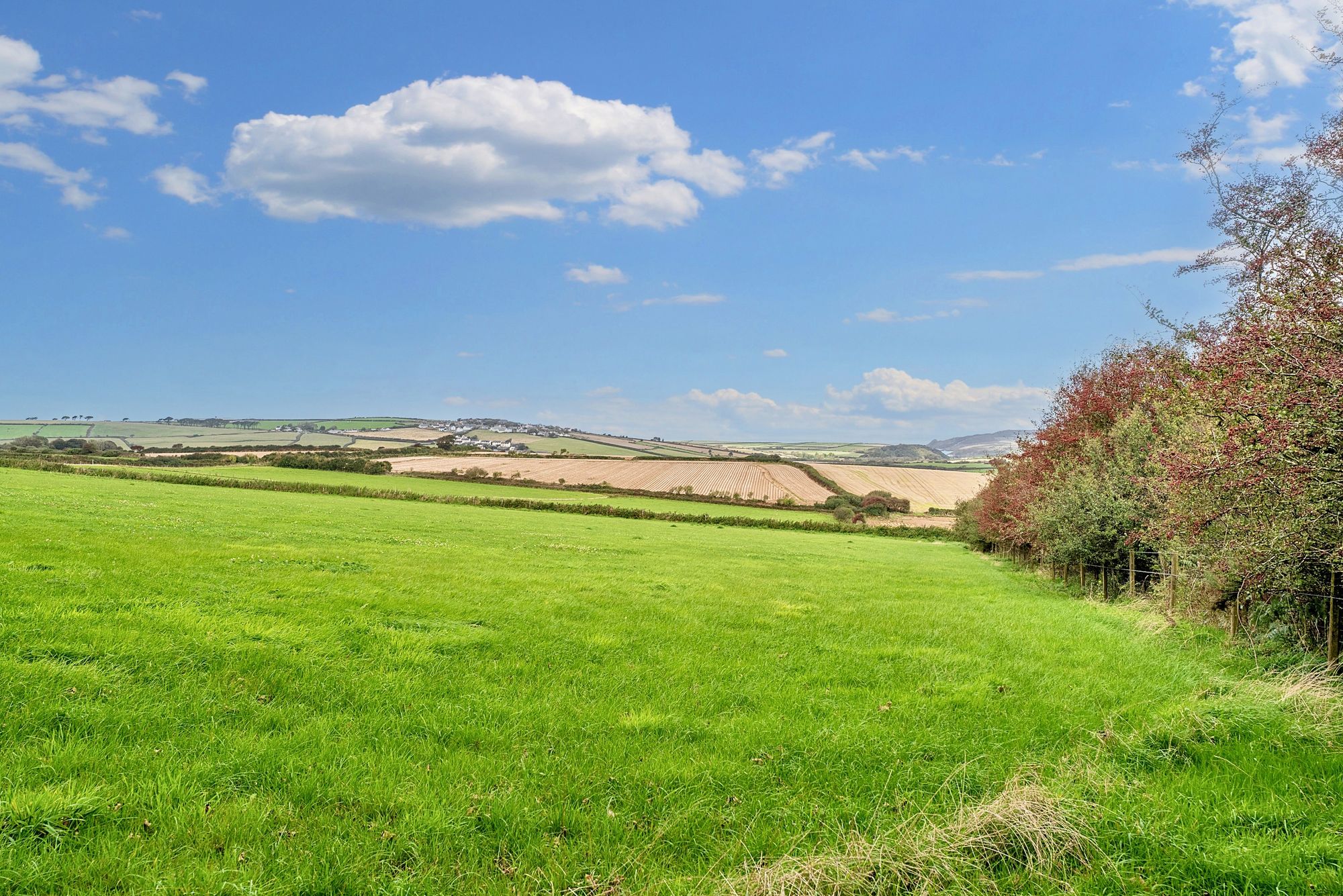 Offering mesmerising coastal and country views, set within 18 acres of land, with THE most exquisite four bedroom farmhouse complete with a spectacular view from the roll-top copper bath tub!