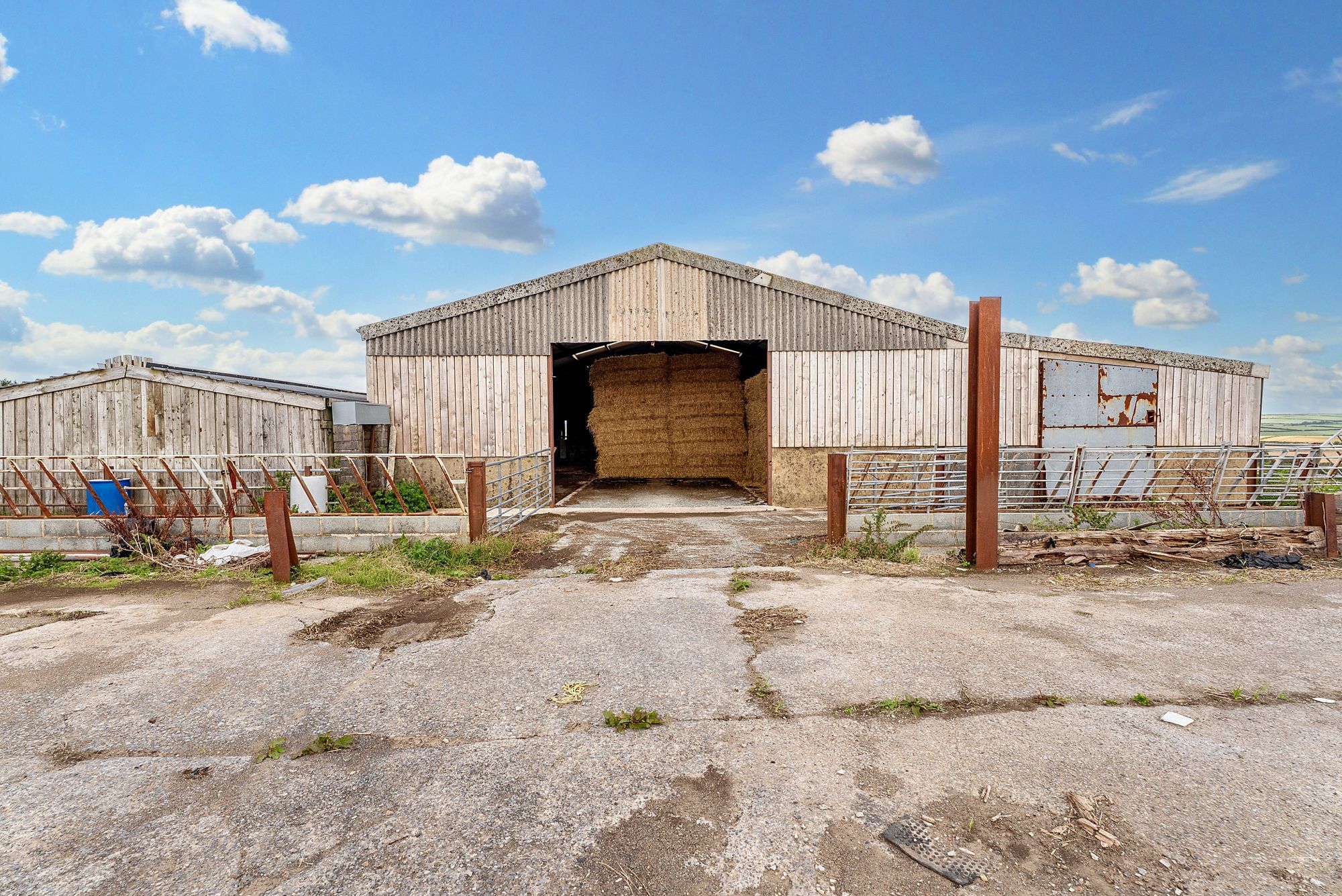 Lean-to Loose Cattle/Hay/Store Shed - 22.86m x 3.96m (75'0" x 13'0" ) Of a concrete portal frame construction with corrugated cladding and roof. Adjoining on the northern gable end is a