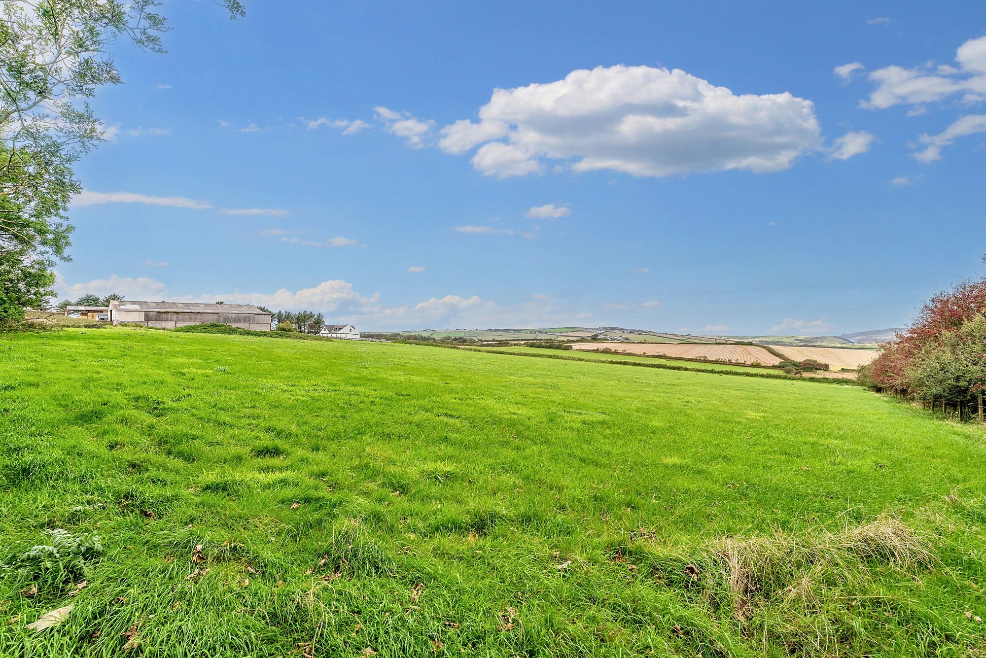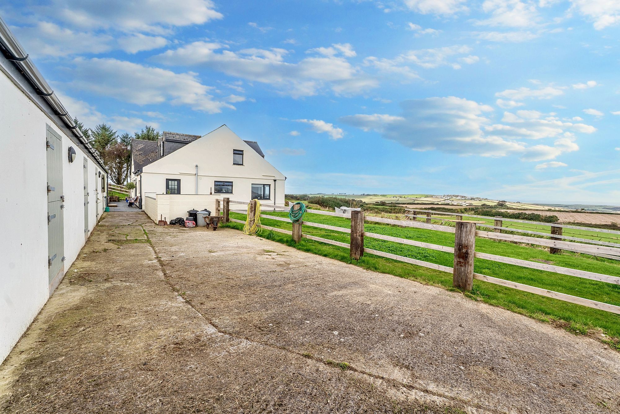 Offering mesmerising coastal and country views, with THE most exquisite four bedroom farmhouse, complete with a spectacular view from the roll -top copper bath tub. 18 acres of land with cattle shed and former dairy, along with stable block with FIVE stables, tack room, various outbuildings to include hay sheds and a machinery store, the 18 acres (or 7.3 hectares) of well tended pastureland is ideal for equestrian and agricultural activities meaning there’s an opportunity for immediate income here.