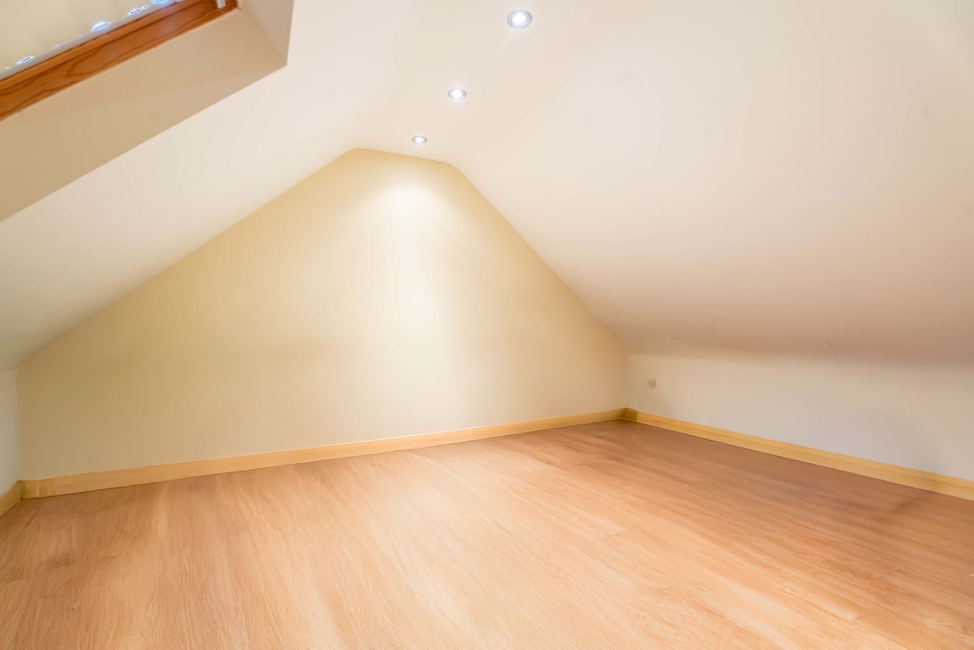 With Dorma window to fore and velux window to the rear. Inset spotlighting, wooden effect flooring, radiator.