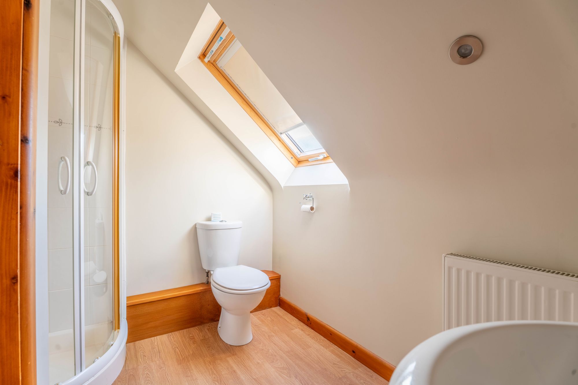 With Dorma window to the fore and Velux window to the rear, with room to sit and enjoy this quiet space. Inset spotlighting. Wooden effect flooring, radiator.